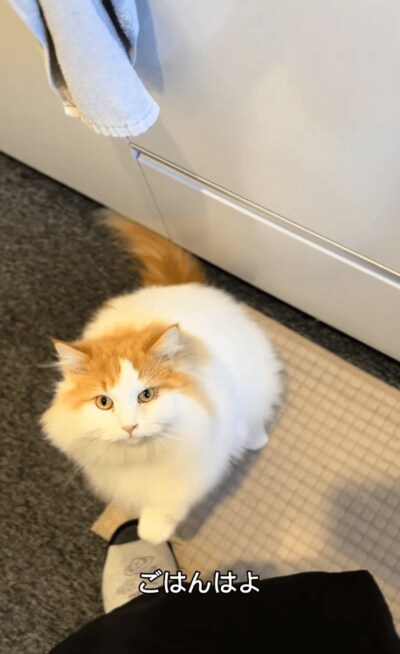 「ごはんはよ」と、自分のご飯の督促ですよ。ちょっと待っててね、猫ちゃん。