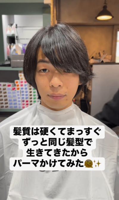 1. 【劇的イメチェン】髪質硬めの男性、人生初のパーマで大変身します
