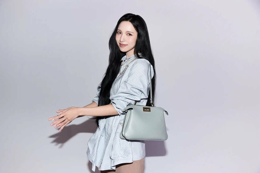 ミナは新作の「ピーカブー ソフト スモール」バッグをエレガントに披露。またフェンディ2025年春夏 ウィメンズコレクションを着用。ピンクのブーケ刺繍とジャカードニット、そして「フェンディ フィーロ」ドロップイヤリングとともに、いろんなスタイルでバッグの魅力を表現しています。