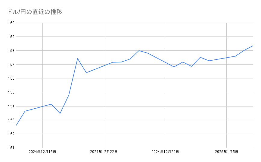 - ドル/円:157.84