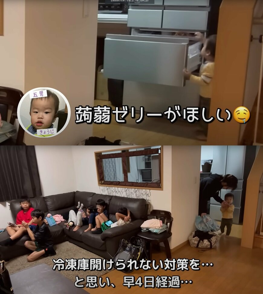 1. 【大家族】5男2女の9人家族、冷蔵庫の開け方を覚えた末っ子きょうじくん1歳