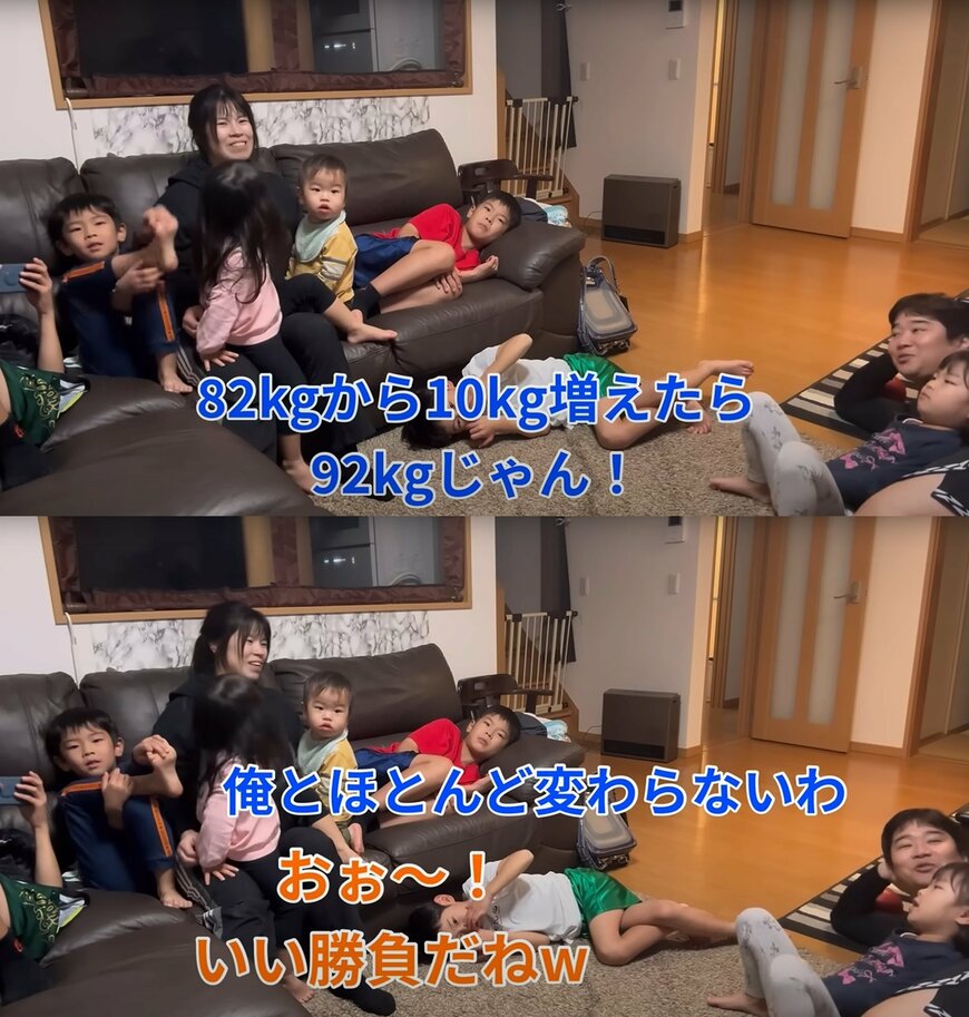 家族みんなで見ていた、YouTuber・ヒカキンさんの動画で「82㎏から10kg増えたら92kgじゃん!」というコメントに「俺とほとんど変わらないわ」とおとっちが反応。
