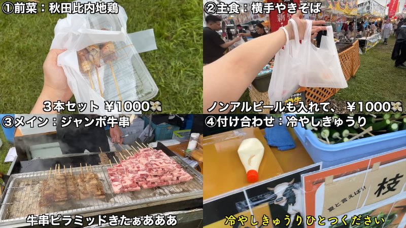 4. 【台風直撃!社畜OL花火大会過酷旅】会場に到着!焼き鳥や焼きそば、ジャンボ牛串…ごちそうを買い集めます