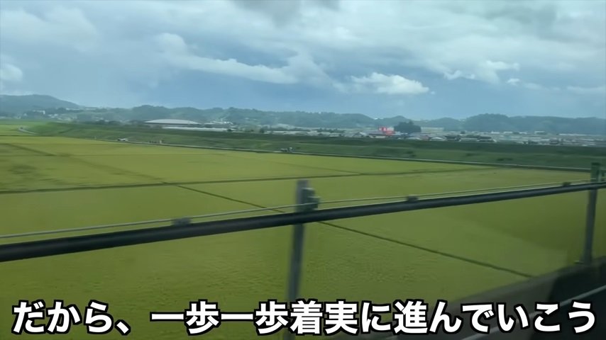 田園風景が続く車窓を眺めながら、物思いにふけるちえ丸さん。