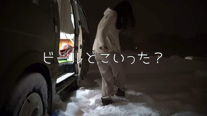 締めはビール。外に取りに行くと、短時間の大雪で埋まり、どこに埋めたかわからなくなるRISAさん。発掘に時間がかかって、飲んだビールは凍る一歩手前のキンキンだったそうですよ。