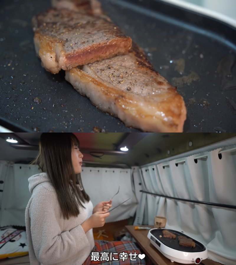 4. 【車中泊女子YouTuber極寒北海道車中泊】メインディッシュはステーキ!こんな豪華な車中泊旅、憧れます