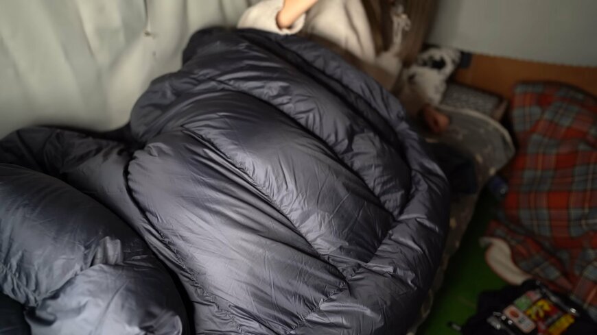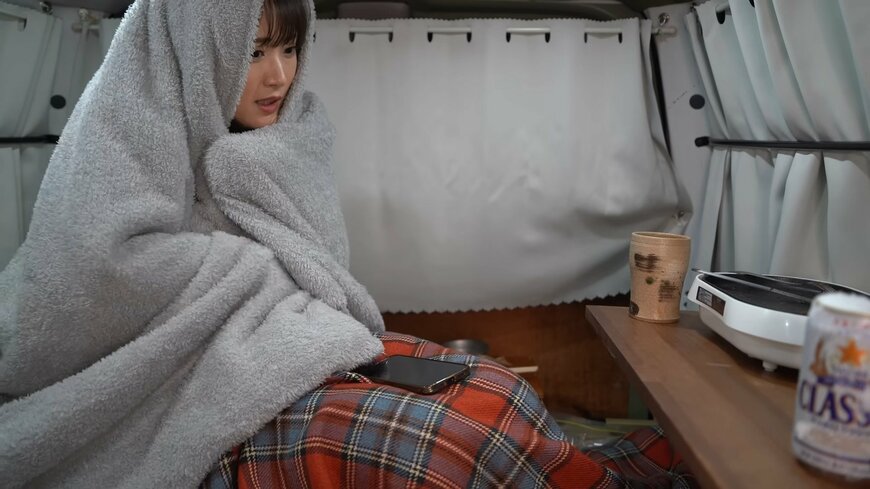 5. 【車中泊女子YouTuber極寒北海道車中泊】寒すぎてぶるぶる震えるRISAさん 大量の毛布をかぶって就寝