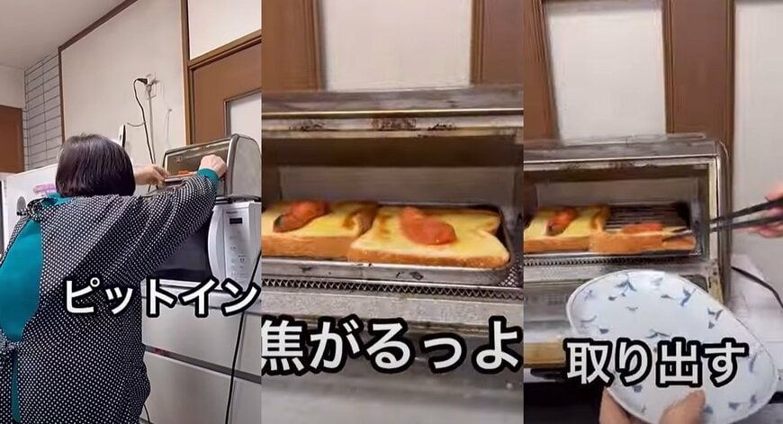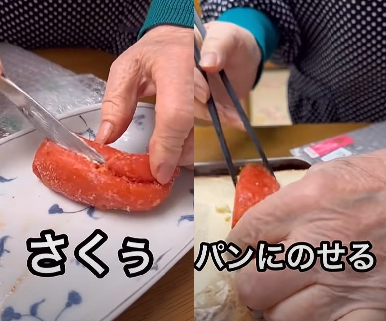 2. 【おばあちゃんのご飯】明太子を大胆にひと腹使ってトーストにドン!