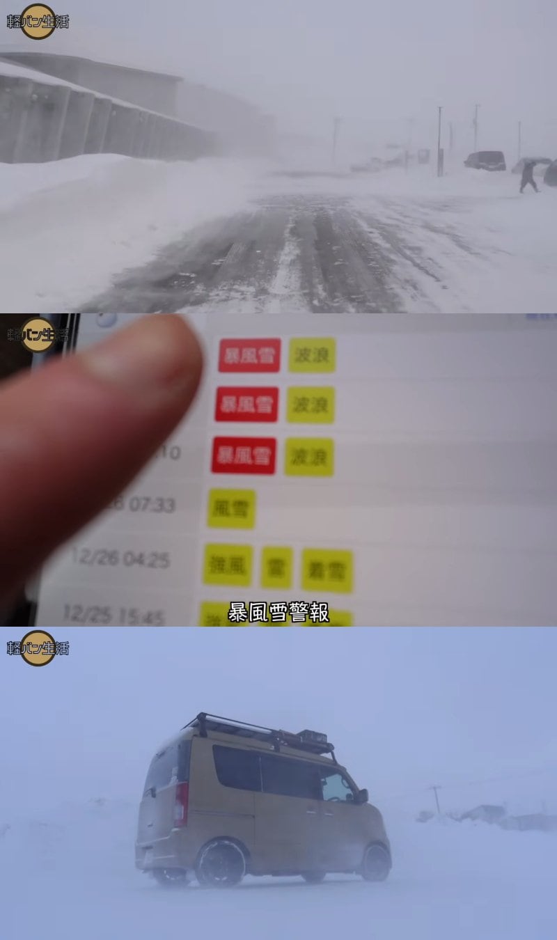 1. 【北海道”最北端”で過酷な軽バン車中泊】目指すは宗谷岬!しかし道中で暴風雪警報発令で足止めに…