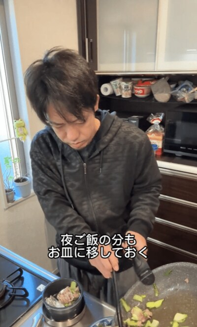 更に多めに作っておいた炒め物は、夜ご飯にも食べられるように取り分けておくようです。