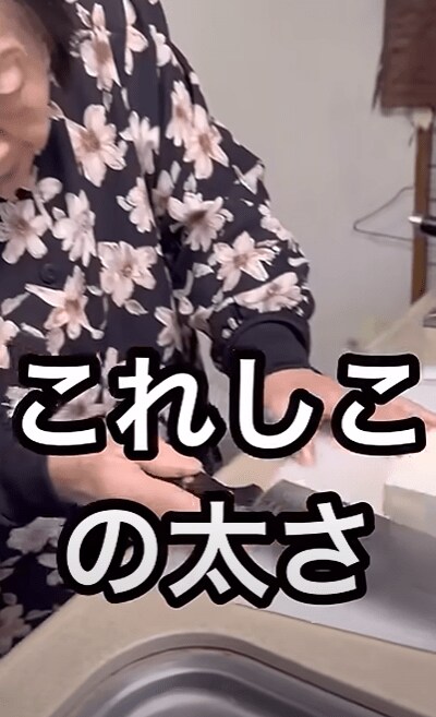 2. 【おばあちゃんのご飯】豆腐は「これしこの太さ」にカット!