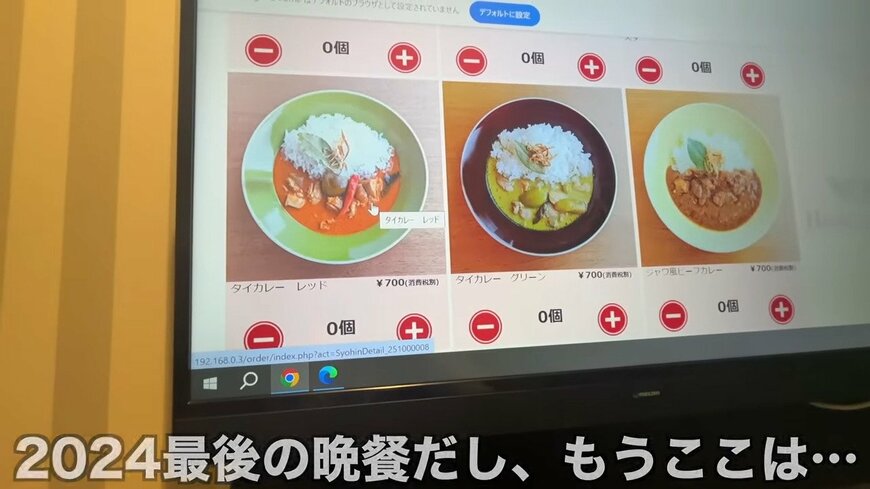「2024最後の晩餐」はネットカフェ飯に決定です。注文したのはレッドカレーに飲み物を合わせて1282円。意外とリーズナブルだと驚いています。