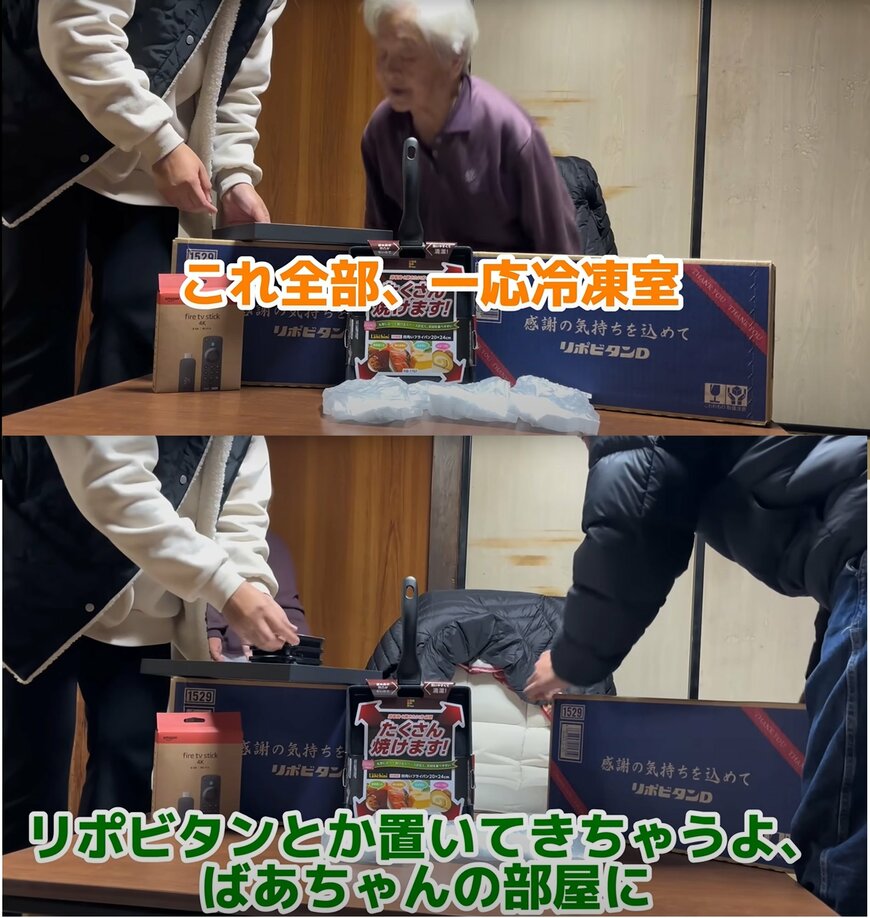 そして別のひ孫さんから、エナジードリンクや新しい卵焼きフライパンなど、他にもたくさんの贈り物がありました。