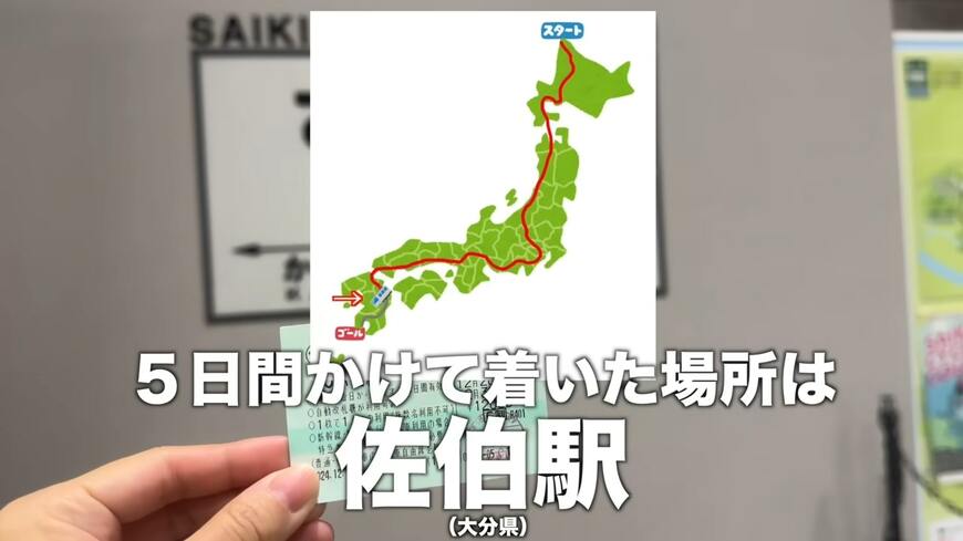 5日間かけて、北海道稚内駅からたどり着いたのは大分県佐伯駅。乗り換え29回、全577駅の大冒険となりました。