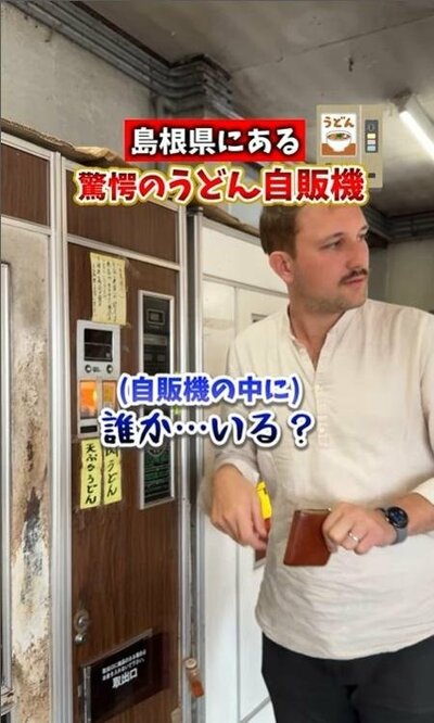 2. 【混乱が隠せないフランス人】初めてのうどん自販機に驚いて出た一言とは