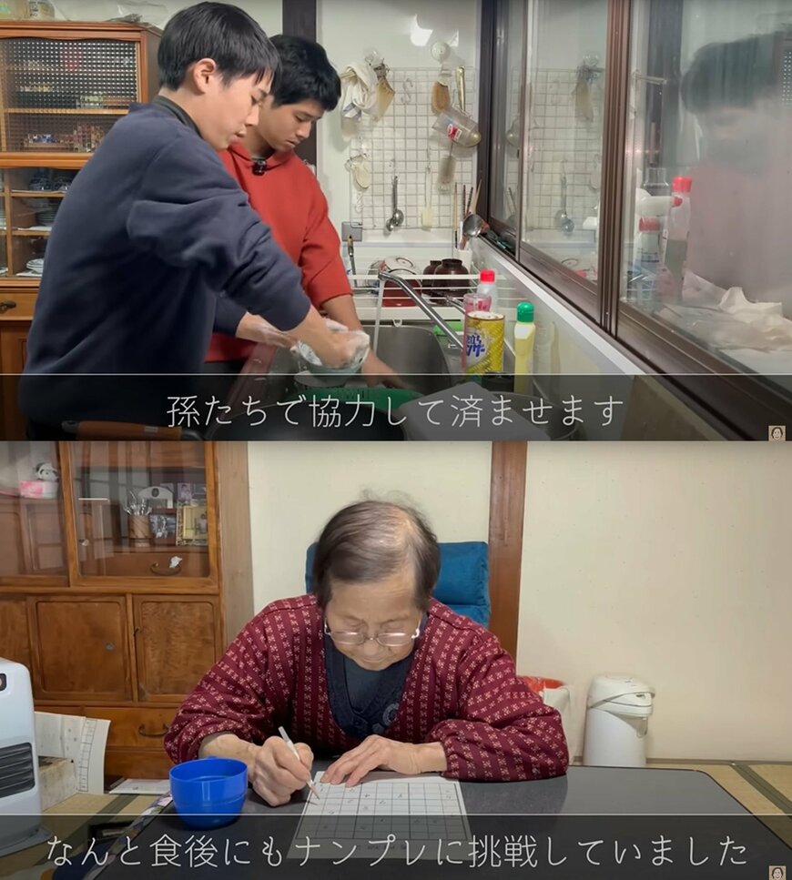 「食事、家事、新聞を読む、クロスワードパズルやナンプレ、体操、お散歩、きちんとした洋服でお出かけ、休息、日記、ひろくんたちにご飯を作る、楽しく会話 それら全てが、きのえおばあちゃんの健康と若さに繋がっていると 思いました」