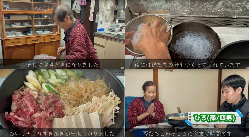 おばあちゃんはこの日奮発して「すき焼き」を作ってくれました。「自分の健康のためにもいいから」と、孫たちの分の夕食も作るきのえおばあちゃん。