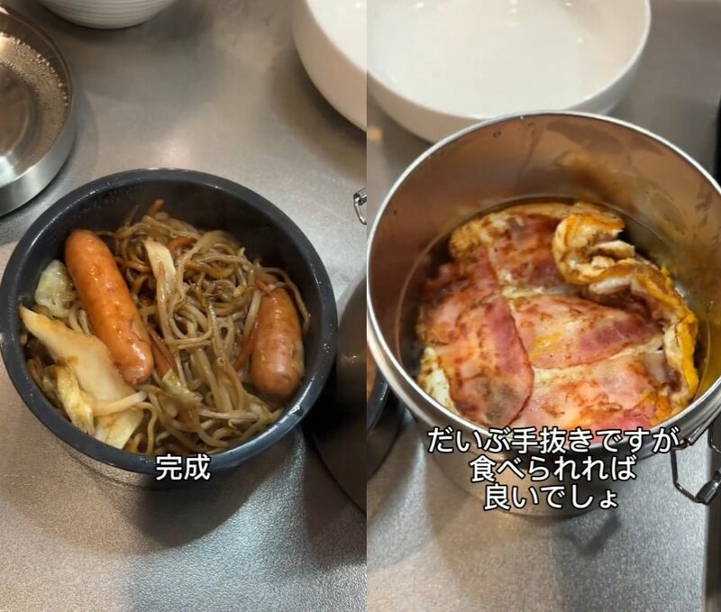 3. 【シングルファザーベーコンエッグ丼と焼きそば弁当】だいぶ手抜き?いえいえ十分お弁当美味しそうです!
