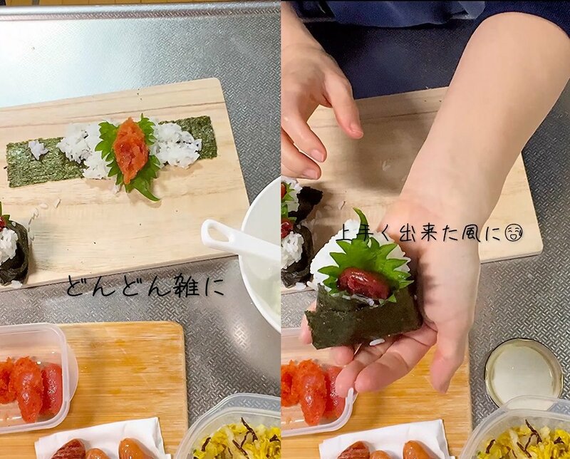 4つ作ったおにぎり、だんだん手慣れて上手に作れるようになってきたようですよ。