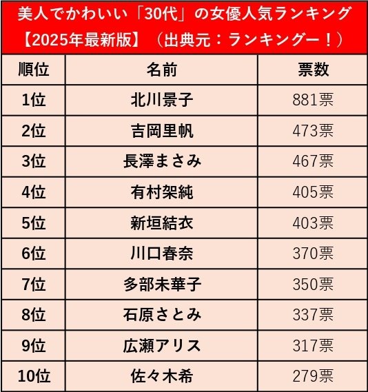 - ランキングー!『美人でかわいい「30代」の女優人気ランキング【2025年最新版】』