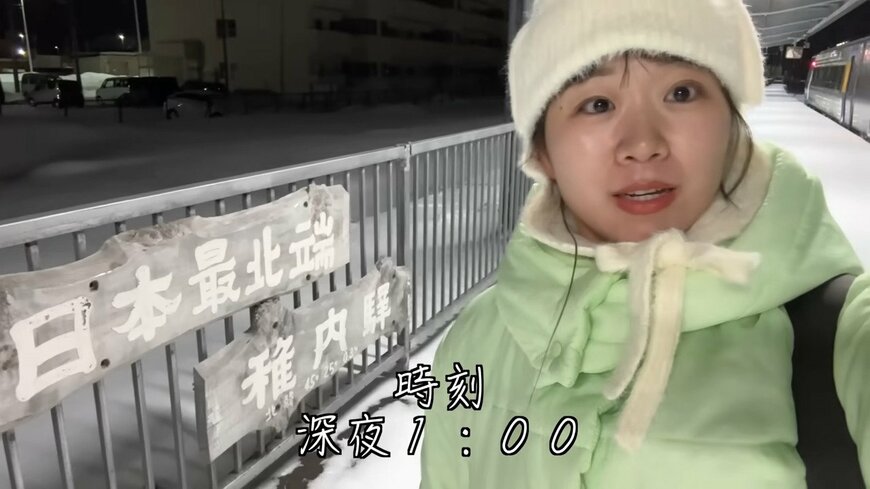 前日のクリスマスイブに苫小牧駅を出発し、何度も遅延をした末、日付が変わって深夜に稚内駅に到着した果林さん。クリスマス当日は稚内を観光します。