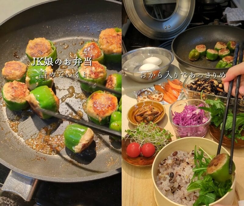 1. 【JK娘に贈るピーマンの肉詰め弁当】工夫がいっぱい「ピーマンの肉詰め弁当」の動画が話題