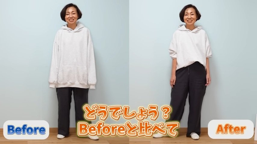 2. ビフォーアフター!だぼパーカーを簡単テクで爽やかな垢抜けファッションに!