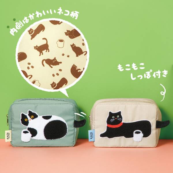 1. カルディオリジナルデザインの『もこもこ刺繍ポーチ』はちわれとくろねこの2種