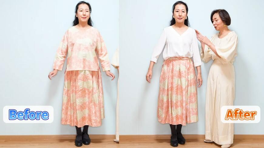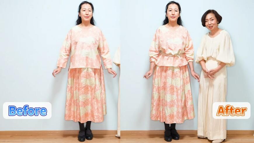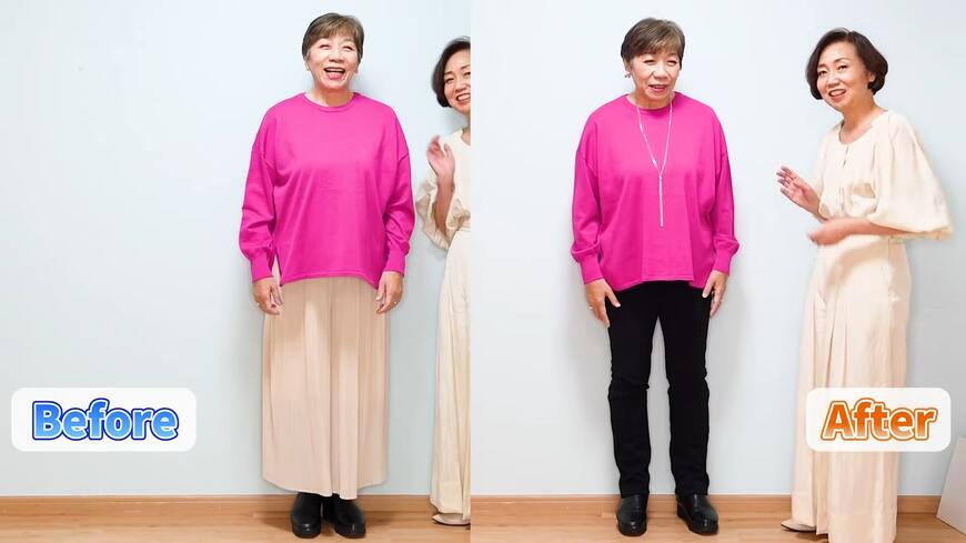 3. ビフォーアフター!スリムなパンツで細いラインを見せて一気に痩せ見え