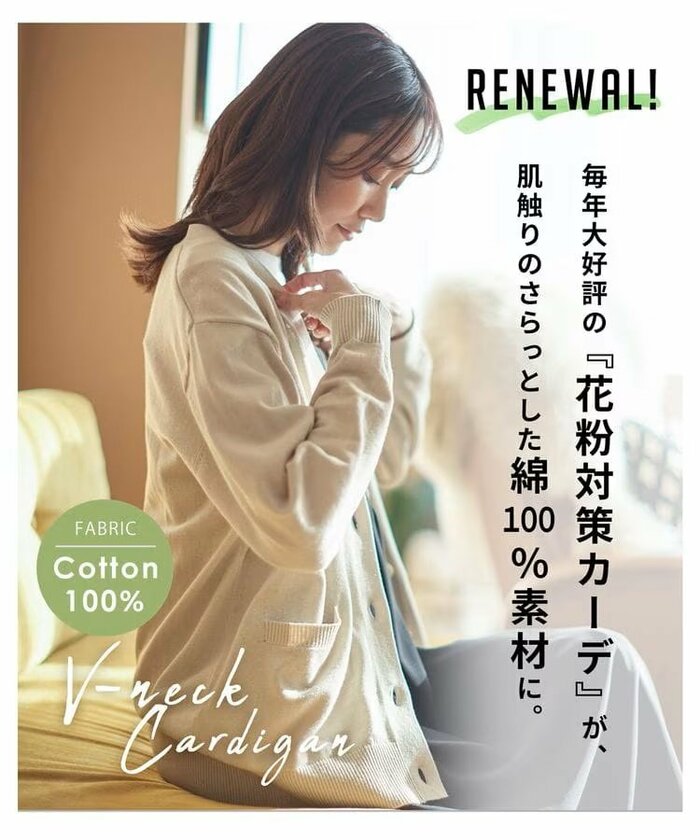 2. 軽くはたくだけのカンタンケア「花粉対策Vネックカーデ」