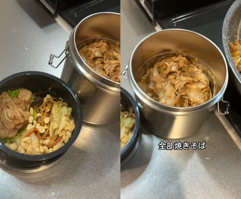 4. 【シングルファザーが意味ないことをする弁当】2段に分けてるけど「全部焼きそば」弁当の完成!でも息子に怒られた(笑)