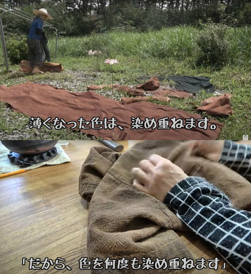 3. 【ウリウリばあちゃん「衣服を育てる暮らし」】染めた布は外で乾かし、色があせたら染め直す