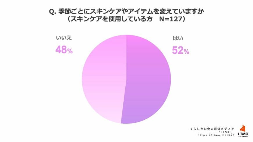 【スキンケアに関する独自調査】季節ごとにケア方法を変える方がやや多い