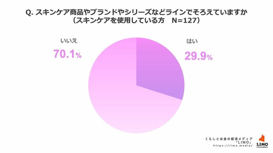 続いて、スキンケアはライン使いをしているかを調査したところ、結果は以下の通りになりました。