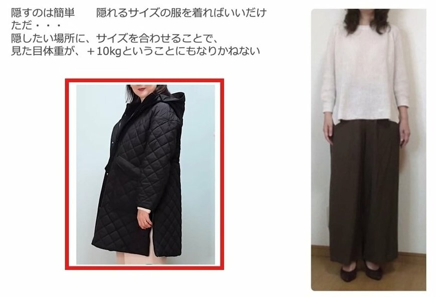 2. 【体型崩れに悩む大人女性へ!体型カバーファッション】コツ1:サイズを一番太いところに合わせない