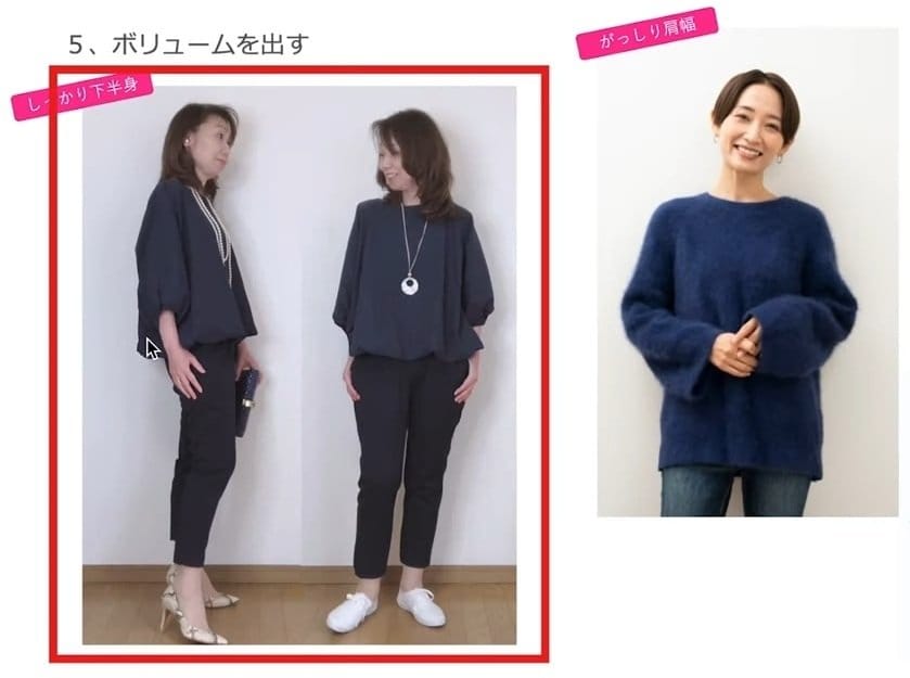 6. 【体型崩れに悩む大人女性へ!体型カバーファッション】コツ5:ボリュームを出す