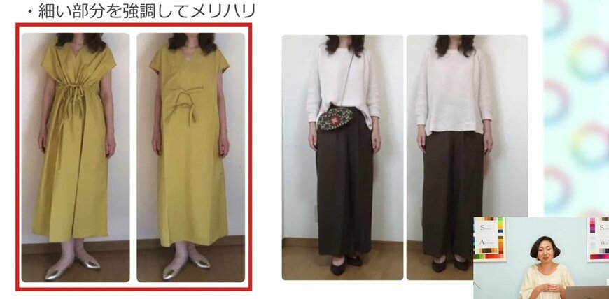 動画では、コーディネート写真を交えながら、体型カバーしつつスタイルアップして見せるテクニックがたくさん解説されています。気になる方はぜひチェックしてくださいね。