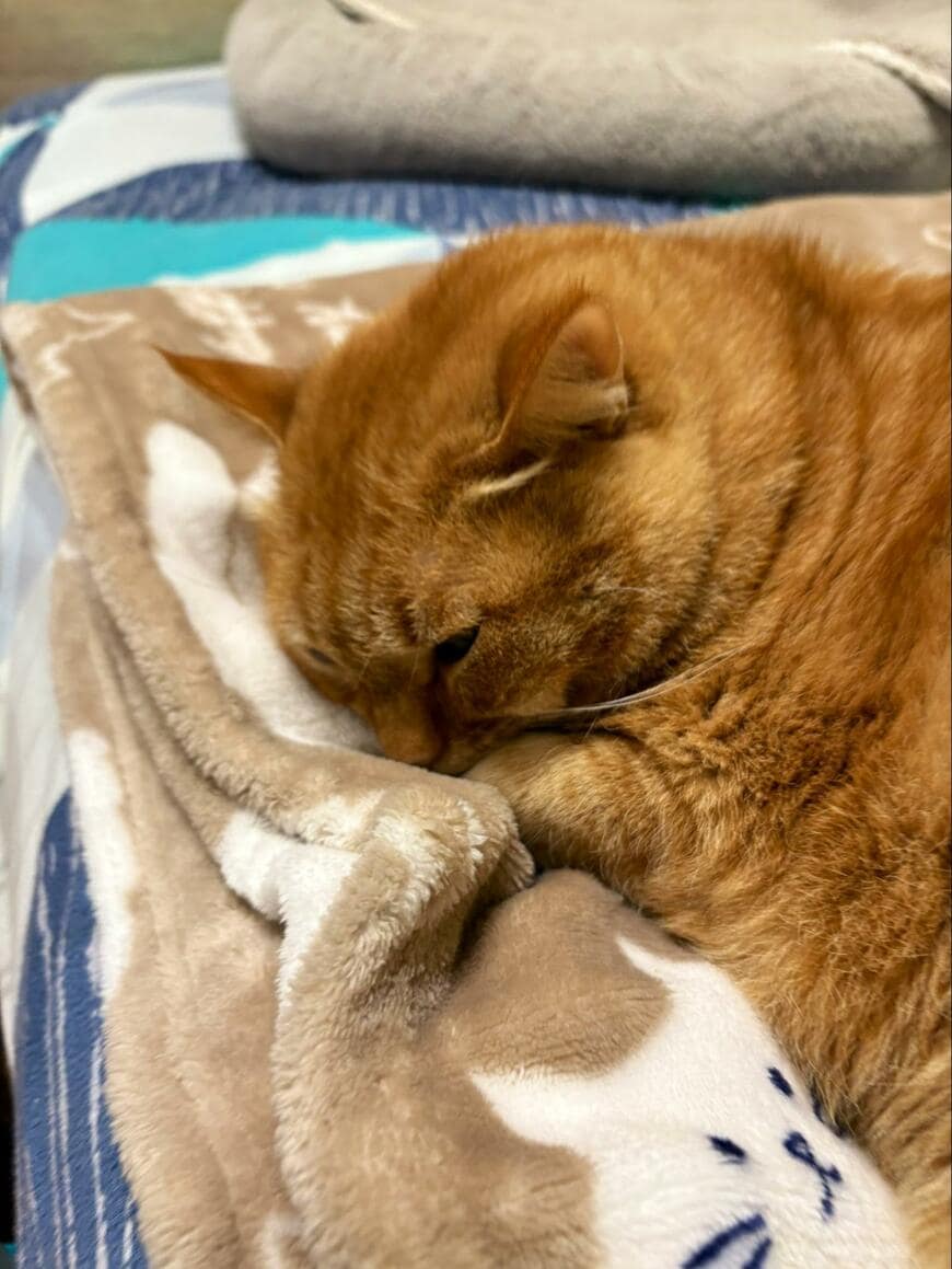 写真をよく見てみると、寝ているように見えたすずくんは薄目を開けて「ジッ」とこちらを見ていたのでした。
