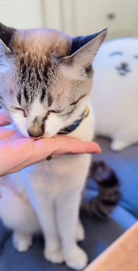 - 「食べたふりしてくれてるのかにゃ〜みんちゃん優しい〜」