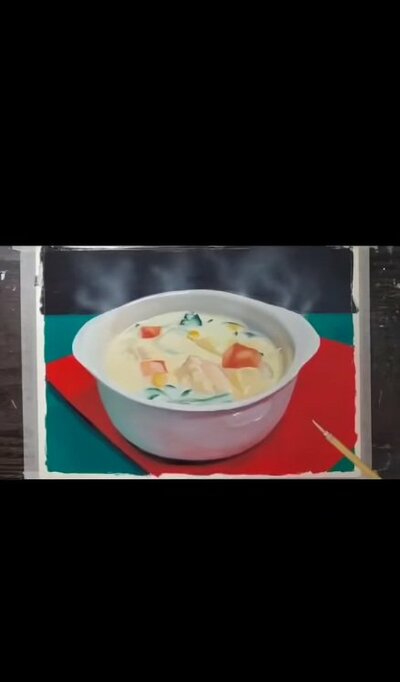 1. 【超リアルな絵】あなたは2度だまされる?!「シチュー??」のアート制作動画が話題!