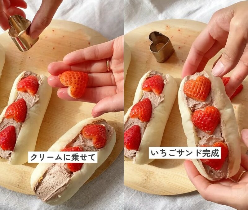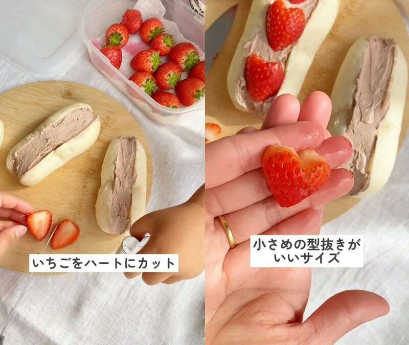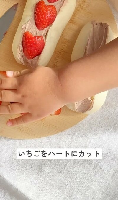 2. 【失敗知らずのいちごサンド】いちごの形がポイント!むちむちおててが可愛すぎ