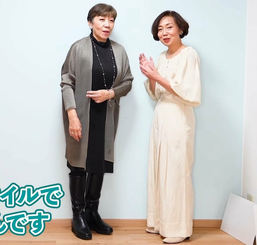 こちらは別コーディネート。ロングカーディガンで縦ラインを強調しながら、おしゃれにまとめています。
