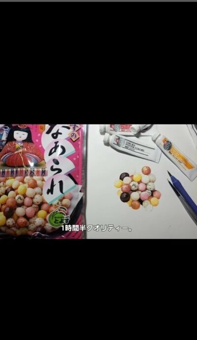 3. 【超リアルな絵】1時間半で何個描けた?本物以上に美味しそうなひなあられ