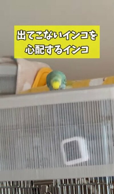 1. 【出待ちするインコ】セキセイインコがサザナミインコを心配する姿に胸キュン