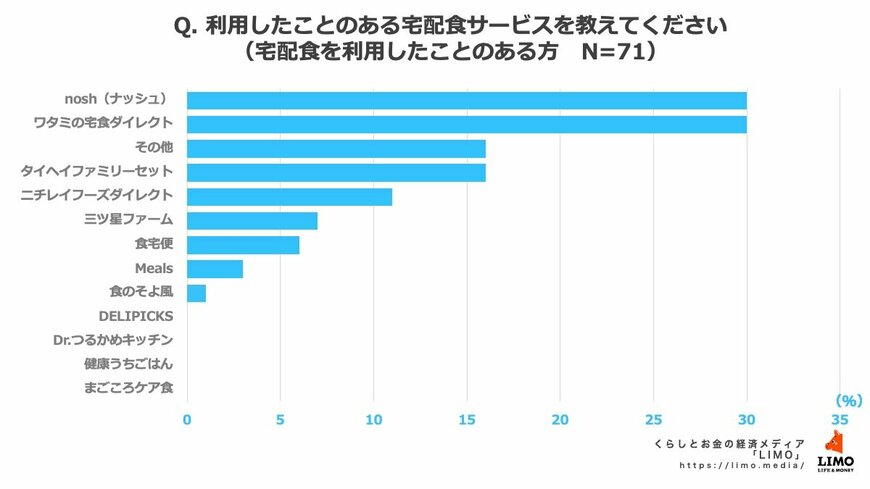 そんな「ワタミの宅食ダイレクト」と「nosh」が29.6%と、約3割が利用したことがあるとわかりました。