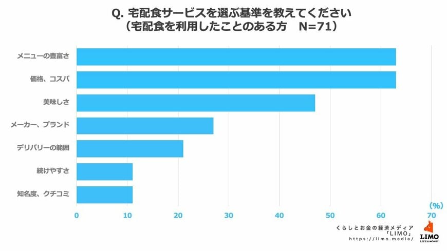 【宅配食に関する独自調査】選ぶ基準は価格、コスパとメニューの豊富さが1位に