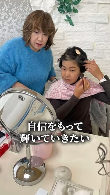 変身過程はこちら。パーソナルカラーや骨格を診断し、似合う色や服を見極めます。またメイクレッスンで自分に似合うメイクを勉強しています。