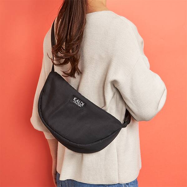 バッグと同じ生地を裏地に使った「ボディバッグ」は体にフィットする形状で、ちょっとした外出や旅行先で使えるコンパクトなサイズ。ベルトの長さを調節できるのが便利!