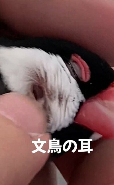 その間も、文鳥がうっとりしているのが可愛いですね。なお、この文鳥さんは「桜文鳥」だそうですよ。
