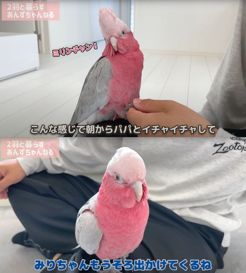 2. 【拗ねるモモイロインコ】イチャイチャもつかの間。パパとの別れの時がやってきました